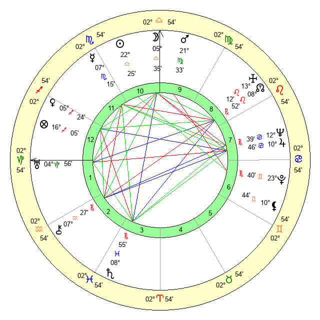 | Sun | 22 Libra 25 | 23 Libra 35 | 22 Aquarius 51 |