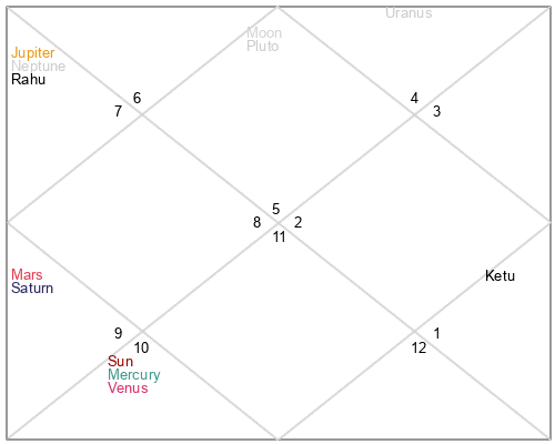 | Rahu | 5 Scorpio 26 | 29 Pisces 33 | 1 Scorpio 53 |
