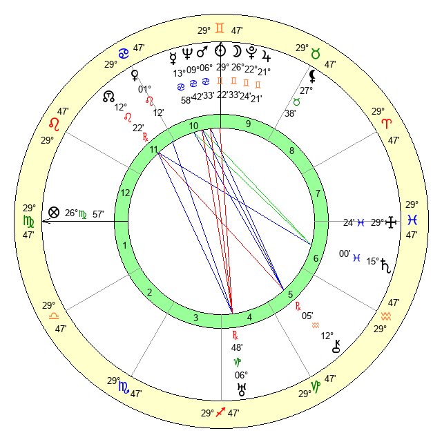 | Mars | 6 Cancer 34 | 2 Virgo 27 | 22 Virgo 49 |