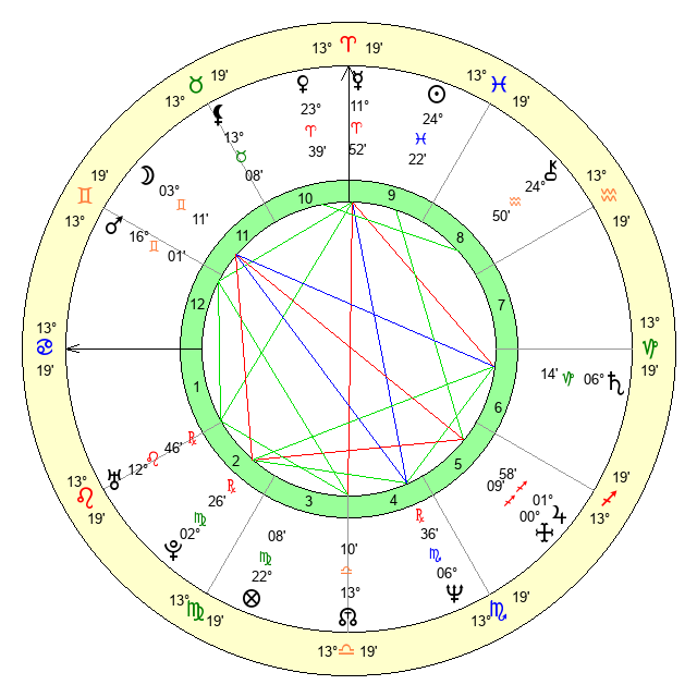 | Moon | 3 Gemini 4 | 10 Libra 51 | 2 Scorpio 59 |
