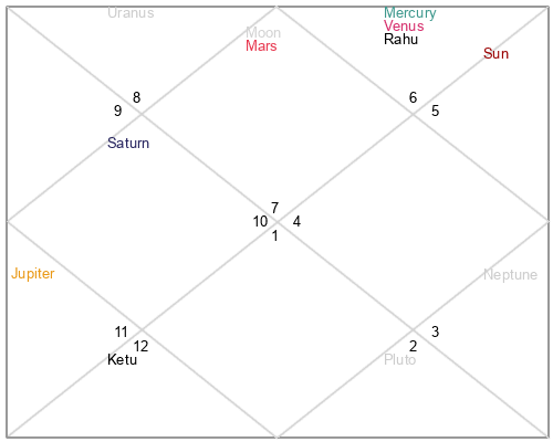 | Rahu | 8 Libra 34 | 18 Pisces 54 | 2 Libra 7 |