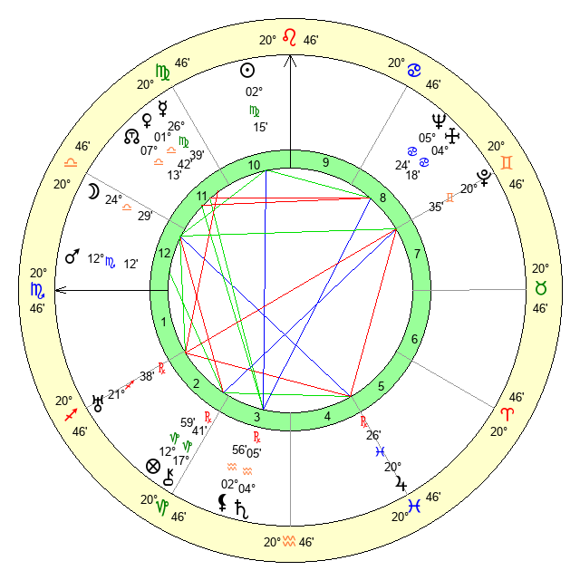 | Sun | 2 Virgo 15 | 3 Virgo 42 | 3 Capricorn 46 |