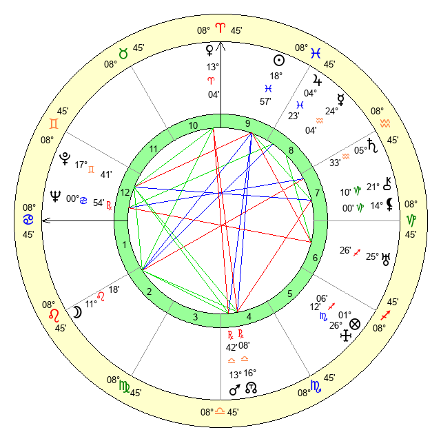 | Neptune | 0 Cancer 55 | 29 Pisces 15 | 3 Cancer 58 |