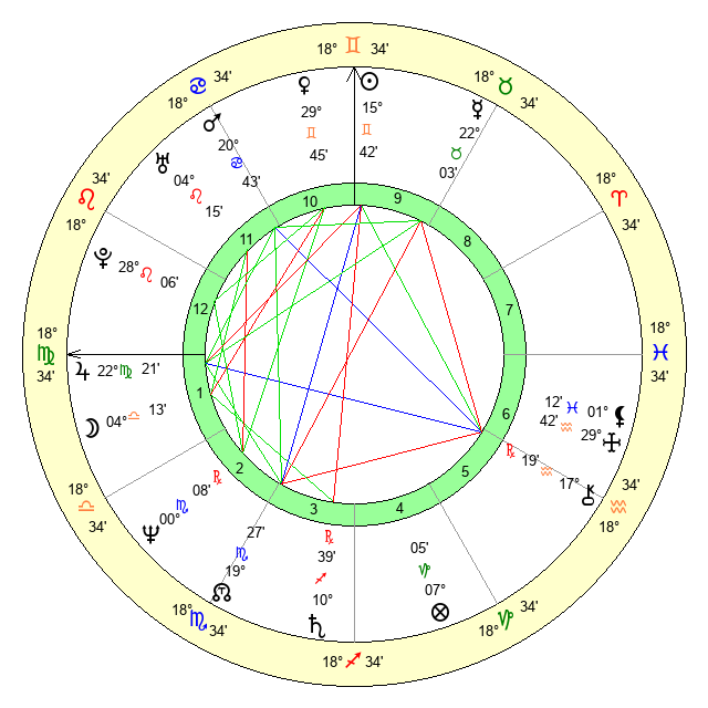 | Jupiter | 22 Virgo 11 | 29 Gemini 17 | 1 Libra 5 |