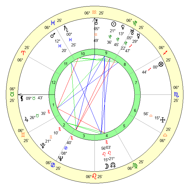 | Moon | 15 Leo 57 | 7 Cancer 18 | 4 Capricorn 6 |