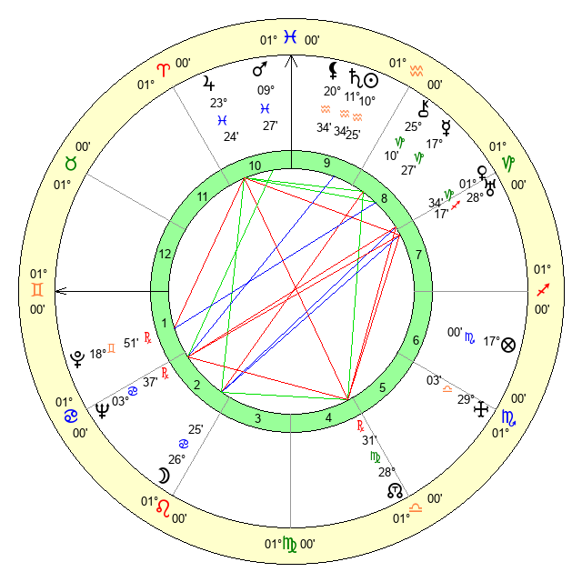 | Jupiter | 23 Pisces 9 | 11 Gemini 17 | 20 Aries 52 |