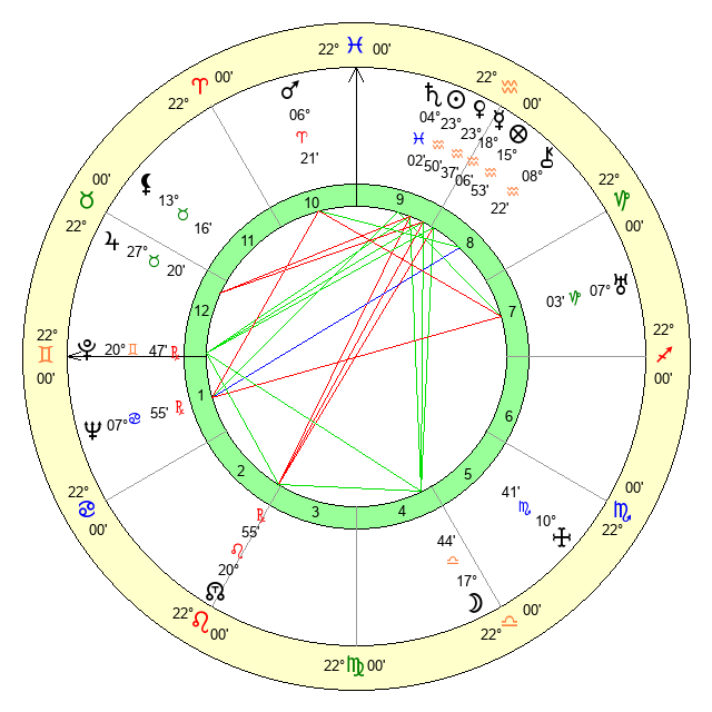 | Mercury | 18 Aquarius 7 | 28 Aquarius 6 | 24 Gemini 58 |