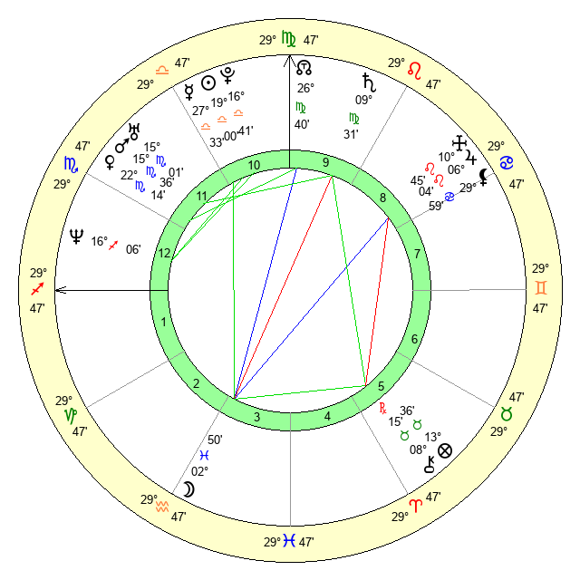 | Saturn | 9 Virgo 53 | 26 Pisces 48 | 13 Virgo 41 |