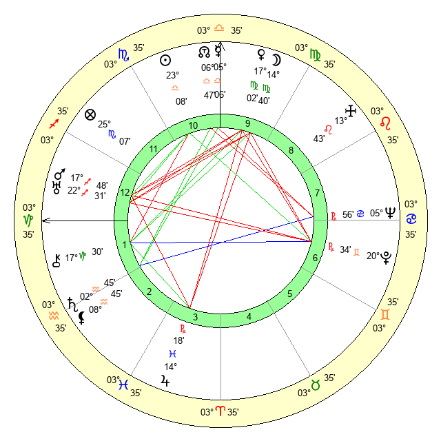 | Moon | 14 Virgo 38 | 11 Virgo 53 | 29 Aquarius 16 |