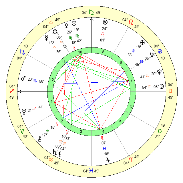 | Sun | 19 Virgo 43 | 21 Virgo 9 | 22 Capricorn 6 |