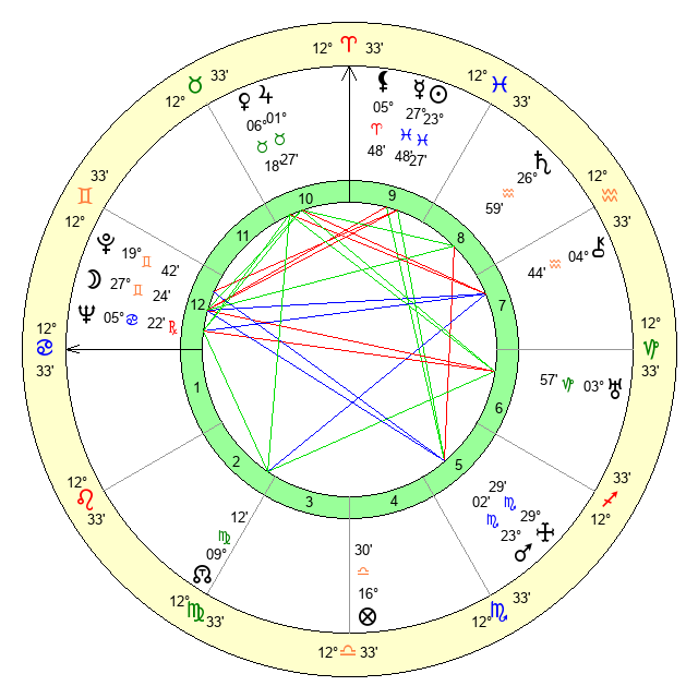| Neptune | 5 Cancer 23 | 29 Pisces 24 | 8 Cancer 21 |