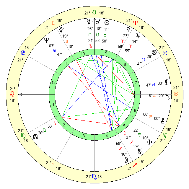 | Mars | 18 Taurus 59 | 6 Leo 23 | 10 Leo 37 |