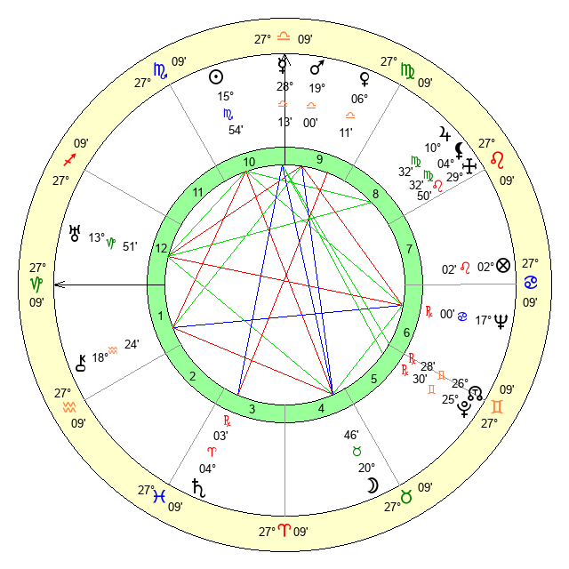 | Sun | 15 Scorpio 54 | 16 Scorpio 32 | 14 Pisces 30 |