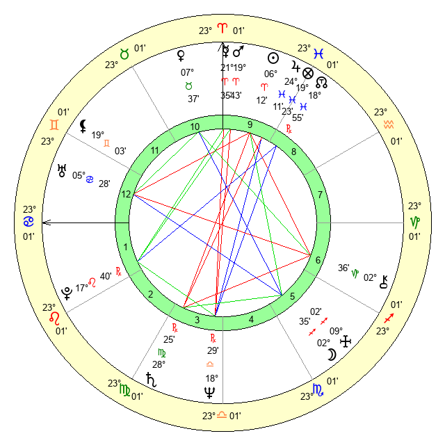 | Mars | 19 Aries 44 | 22 Cancer 15 | 13 Gemini 23 |