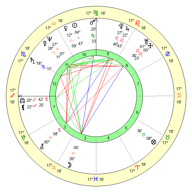 | Mars | 20 Virgo 34 | 4 Scorpio 19 | 5 Scorpio 37 |