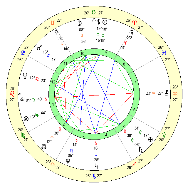 | Venus | 28 Gemini 55 | 5 Aries 48 | 4 Virgo 45 |