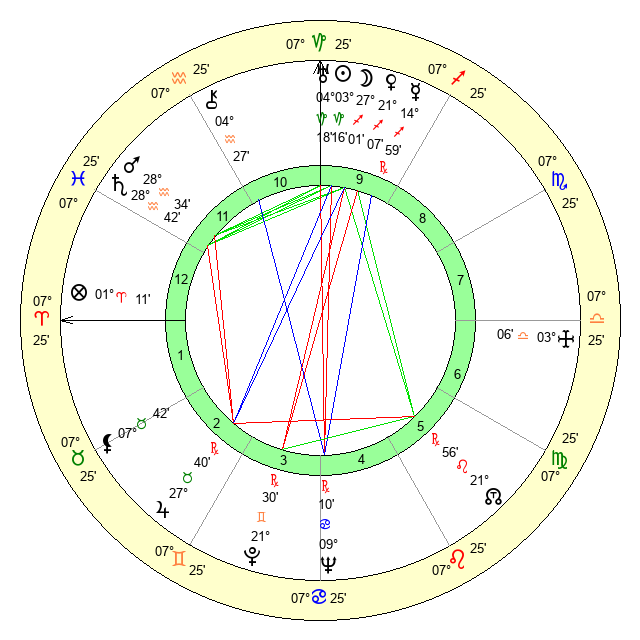 | Saturn | 29 Aquarius 9 | 25 Pisces 44 | 12 Pisces 24 |