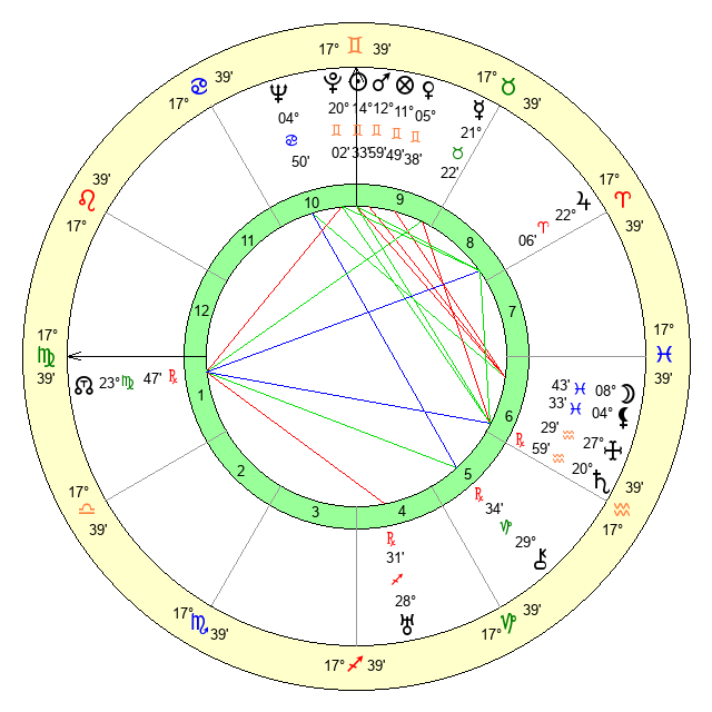 | Venus | 5 Gemini 39 | 29 Aries 31 | 4 Scorpio 44 |