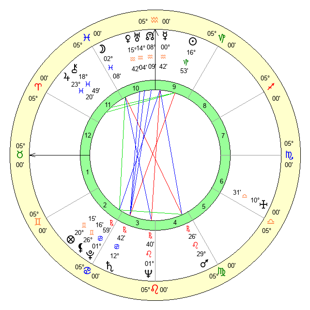 | Uranus | 14 Aquarius 2 | 23 Taurus 29 | 19 Aquarius 20 |