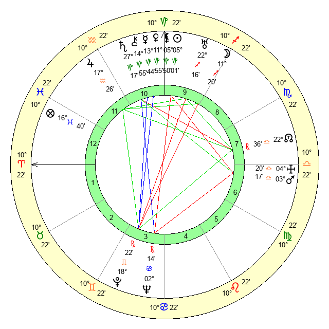 | Mars | 3 Libra 16 | 9 Capricorn 24 | 28 Virgo 3 |
