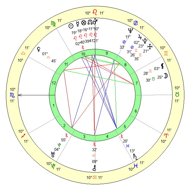 | Venus | 1 Libra 46 | 14 Cancer 37 | 1 Sagittarius 54 |