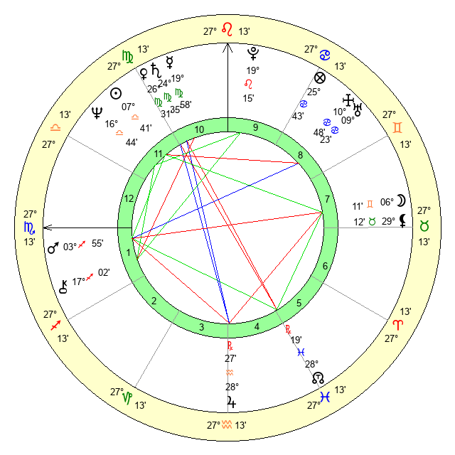 | Venus | 26 Virgo 32 | 14 Virgo 38 | 0 Capricorn 35 |