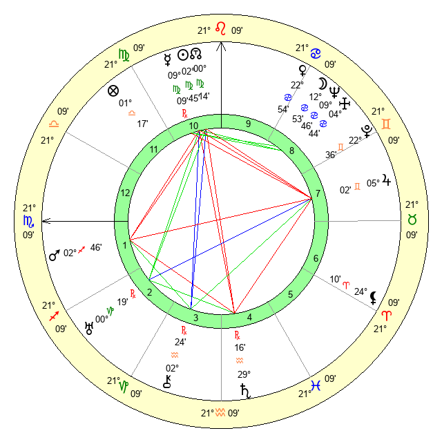 | Sun | 2 Virgo 45 | 3 Virgo 42 | 2 Capricorn 15 |