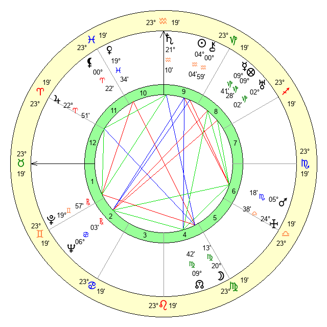 | Moon | 20 Virgo 1 | 6 Sagittarius 16 | 16 Aquarius 55 |