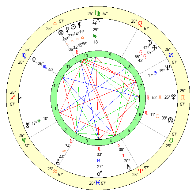 | Venus | 25 Scorpio 41 | 23 Virgo 35 | 28 Aquarius 52 |