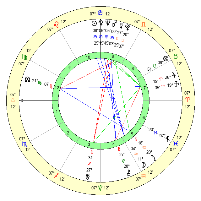 | Mars | 0 Cancer 4 | 7 Virgo 36 | 17 Virgo 12 |