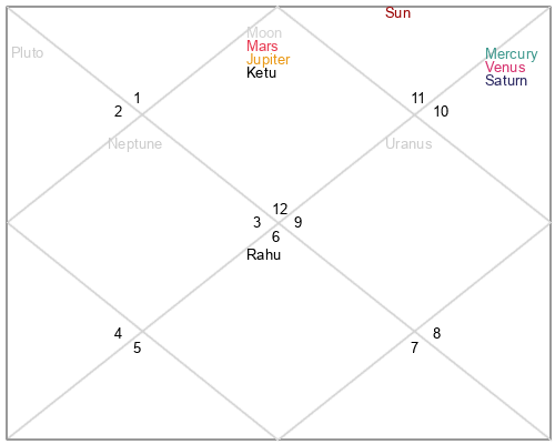 Note: This birth chart is calculated using the date and place of birth, with the time set to noon (12:00 PM) local time. While this provides accurate planetary positions for most celestial bodies, the Ascendant (Rising Sign) and house cusps are not calculated since they require precise birth time. For a complete astrological analysis including houses and rising sign, please provide the exact birth time.