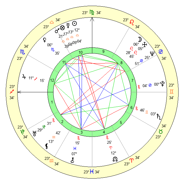 | Venus | 6 Scorpio 36 | 19 Virgo 52 | 22 Pisces 7 |