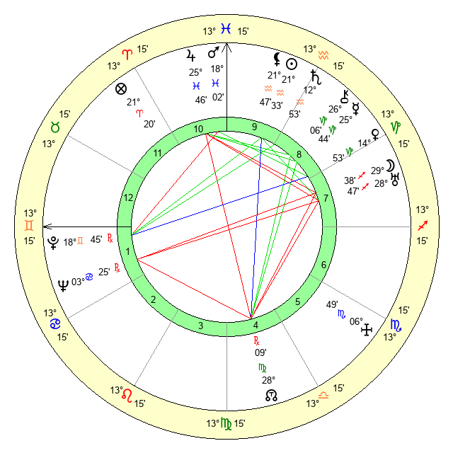 | Sun | 21 Aquarius 34 | 23 Aquarius 13 | 20 Gemini 18 |