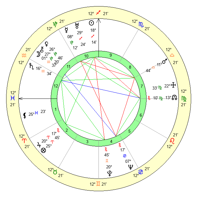 | Moon | 1 Aquarius 41 | 5 Virgo 12 | 23 Gemini 56 |