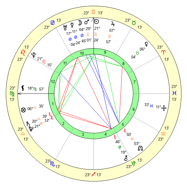 | Sun | 21 Gemini 24 | 21 Gemini 58 | 0 Virgo 15 |