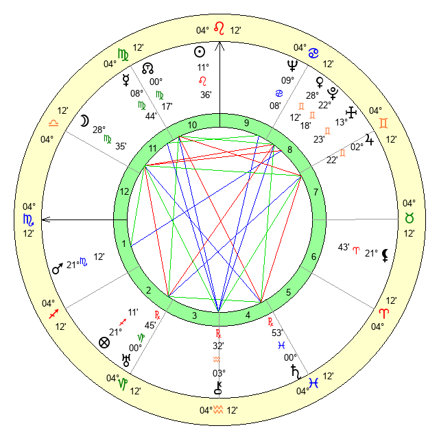 | Moon | 28 Virgo 35 | 17 Sagittarius 34 | 27 Aquarius 44 |