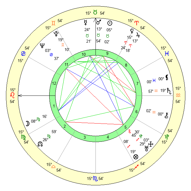 | Mars | 13 Taurus 55 | 3 Leo 13 | 6 Leo 9 |