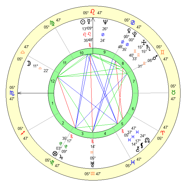 | Mercury | 9 Leo 47 | 5 Leo 21 | 25 Scorpio 58 |