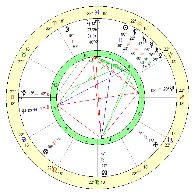 | Mars | 25 Pisces 2 | 17 Cancer 5 | 23 Gemini 17 |