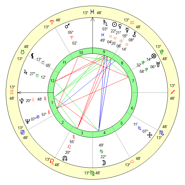 | Pluto | 20 Gemini 48 | 2 Aquarius 23 | 22 Gemini 9 |