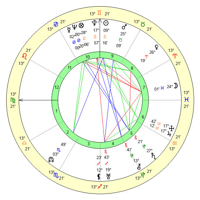 | Sun | 9 Gemini 17 | 10 Gemini 29 | 7 Libra 34 |