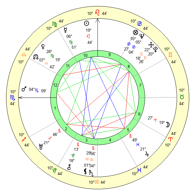 | Venus | 28 Virgo 19 | 15 Cancer 48 | 4 Scorpio 28 |