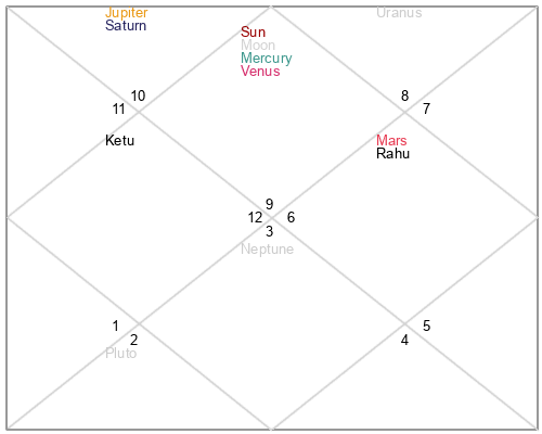 | Rahu | 21 Libra 17 | 12 Pisces 17 | 14 Libra 46 |