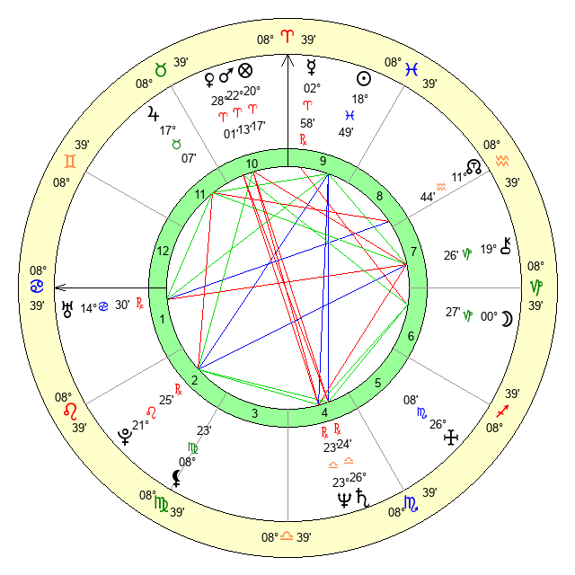 | Mars | 22 Aries 13 | 18 Cancer 6 | 13 Gemini 27 |