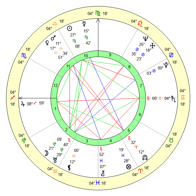 | Venus | 17 Libra 51 | 1 Virgo 11 | 4 Pisces 57 |