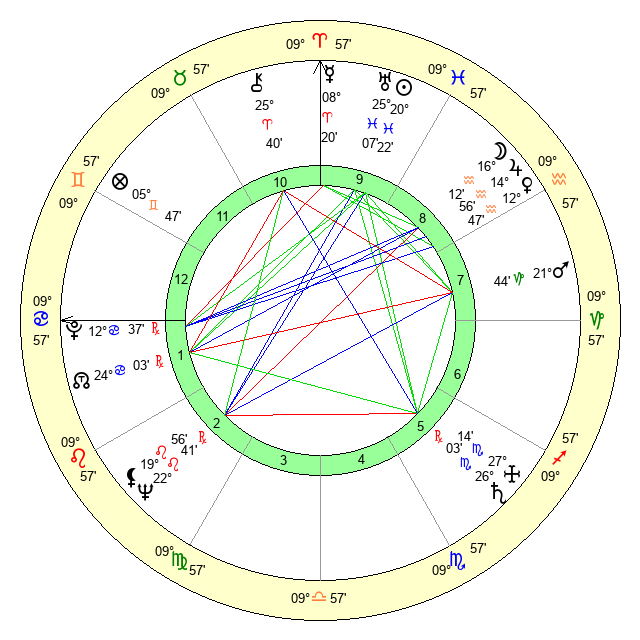| Sun | 20 Pisces 22 | 21 Pisces 22 | 26 Gemini 41 |