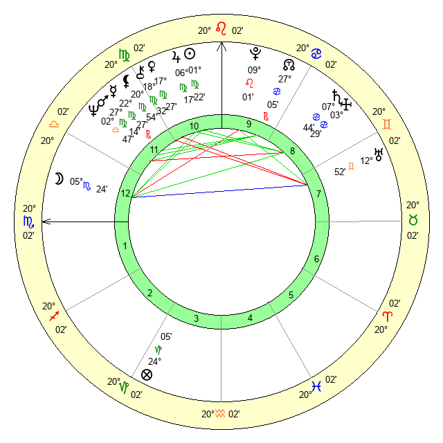 | Moon | 5 Scorpio 25 | 18 Virgo 54 | 26 Libra 5 |