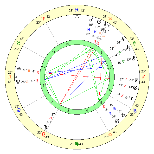 | Moon | 21 Leo 39 | 14 Sagittarius 3 | 12 Aquarius 27 |
