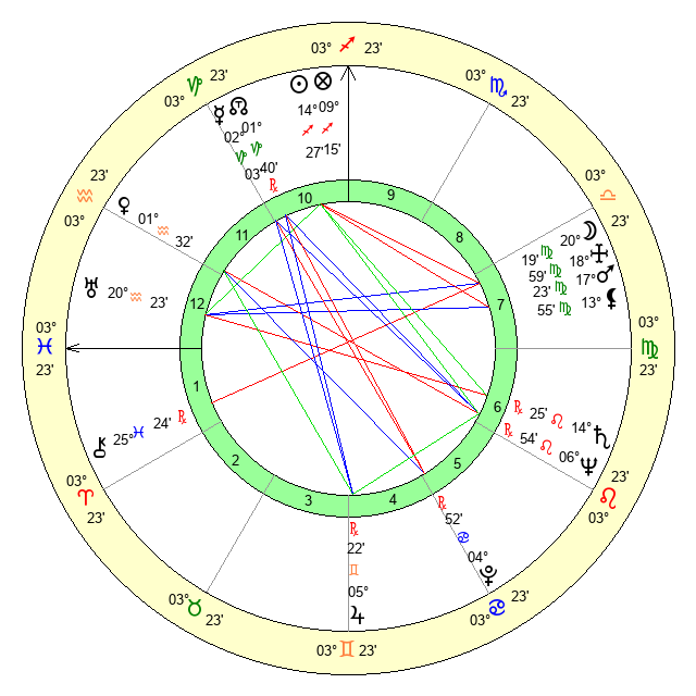 | Mars | 17 Virgo 23 | 6 Leo 10 | 20 Virgo 27 |