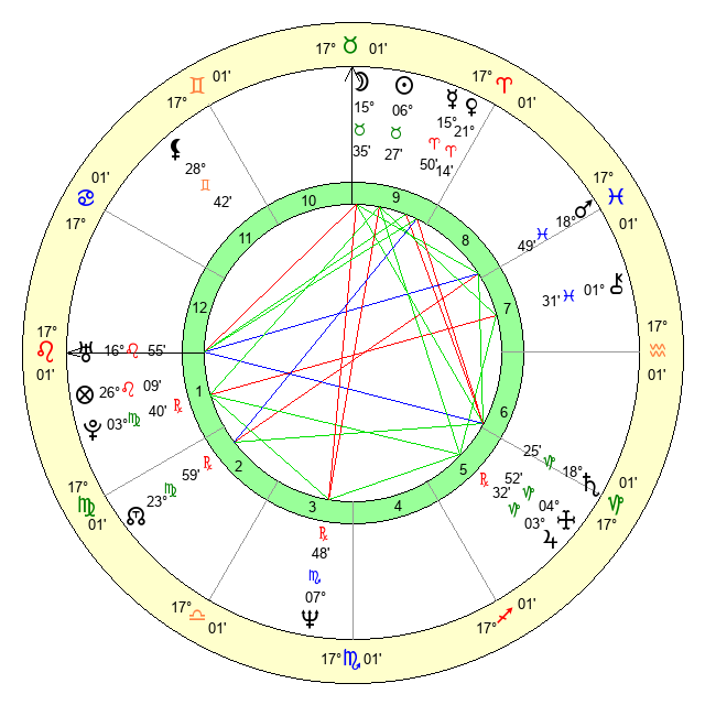 | Moon | 15 Taurus 28 | 21 Aries 2 | 21 Virgo 36 |
